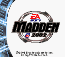 Madden NFL 2002 est un jeu vidéo de football américain sorti en 2001 et fonctionne sur PlayStation, PlayStation 2, Nintendo 64, Windows, Xbox, GameCube, Game Boy Color et Game Boy Advance. Le jeu a été développé et édité par Electronic Arts. Wikipedia
