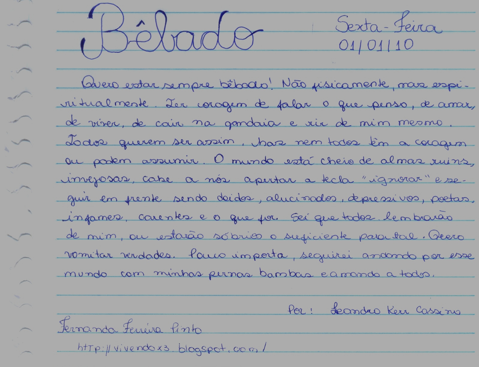 Este texto vi em blog, escrevi em uma folha e publiquei no blog (ainda