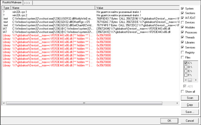 Sintomi dell?infezione dalla famiglia di malware Rootkit.Win32.PMax: