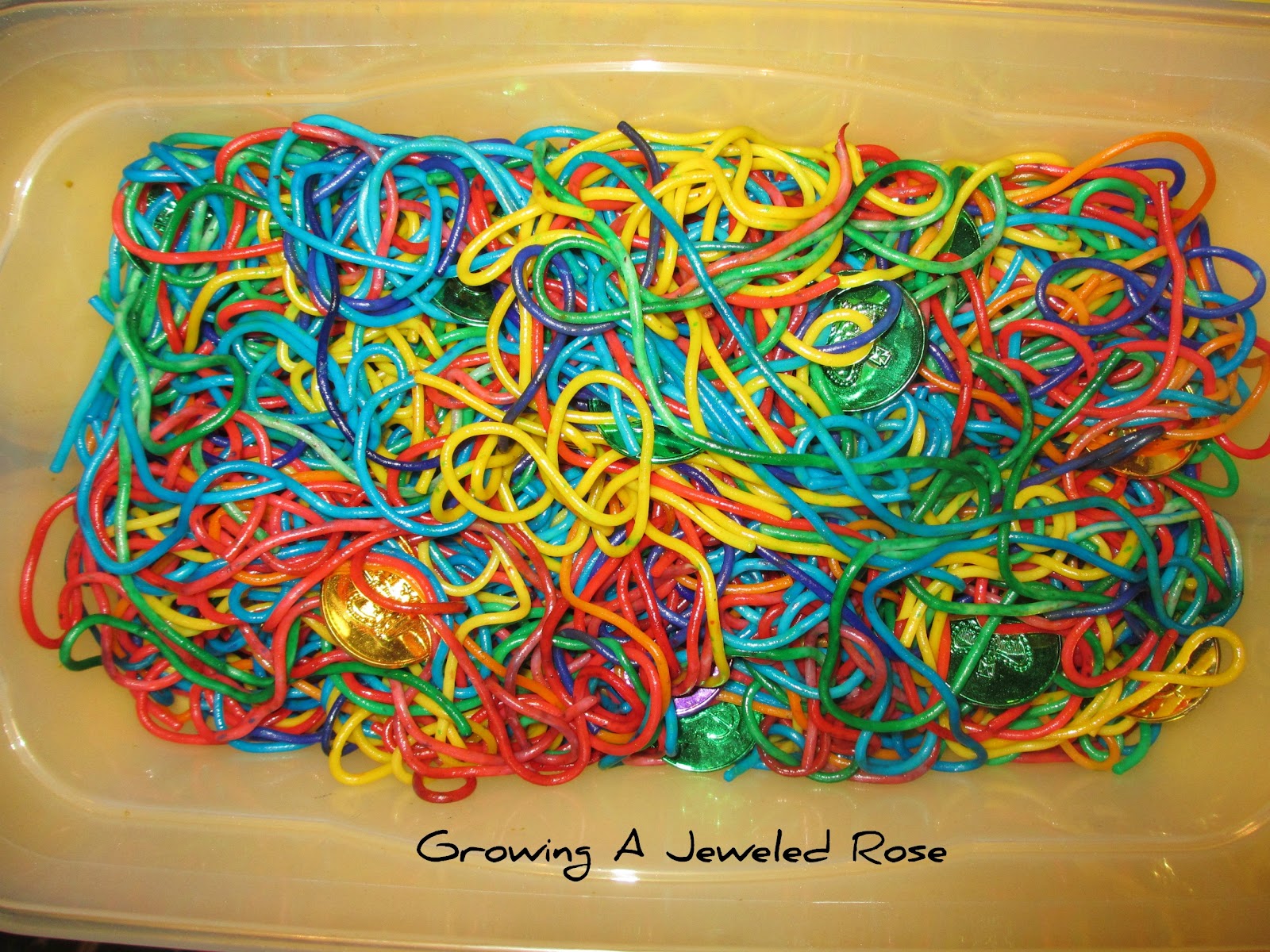 set out some tongs and a scooper. At first, Rosie opted to use both!