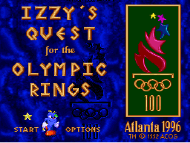 Izzy's Quest for the Olympic Rings est un jeu vidéo de plates-formes sorti en 1996 sur Mega Drive et Super Nintendo. Le jeu a été développé par Alexandria, Inc. et édité par U.S. Gold. Il met en scène Izzy, la mascotte des Jeux olympiques d'été de 1996 qui se sont déroulés à Atlanta. Wikipedia