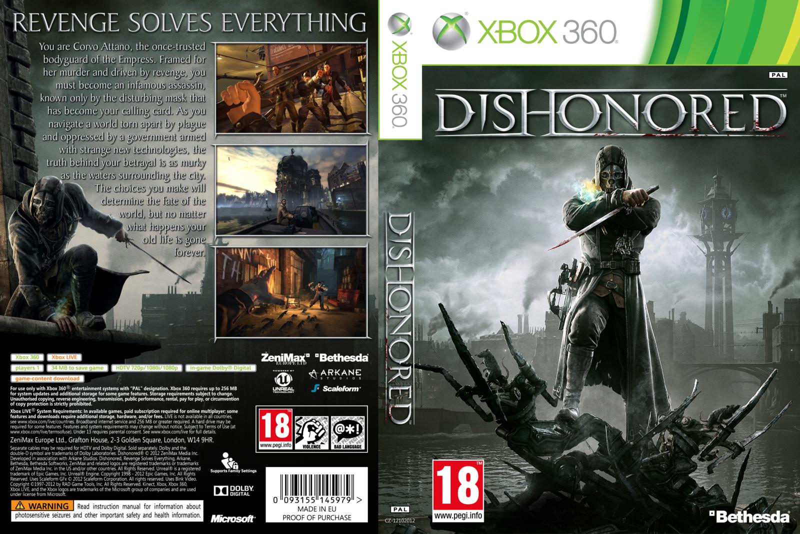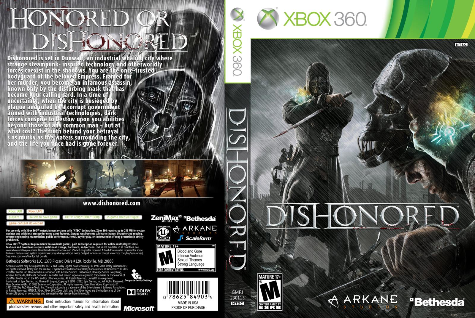 Dishonored est un jeu vidéo en vue subjective qui propose d'adapter son gameplay en fonction de la philosophie du joueur, soit brutale (le jeu devenant alors un jeu de combat en vue à la première personne), soit discrète (le jeu prenant alors des tournures de jeu d'infiltration), soit entre les deux. Le jeu a été développé par le studio lyonnais Arkane Studios puis édité par Bethesda Softworks en 2012 sur PlayStation 3, Xbox 360 et PC. Wikipedia